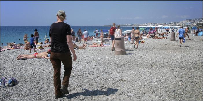 Middels een bosrijke omgeving kunnen we op deze zonnige zondagochtend Nice binnenlopen. De eerste trimmers komen ons op dit vroege tijdstip al tegemoet gerend. Om half negen passeren we het eerste bordje NICE. Gehaald. Vijftien jaar heeft onze vakantie gestaan in het teken van wandelen over de GR5. Vakantie’s van wandelen, afzien maar vooral genieten. Een emotioneel moment.